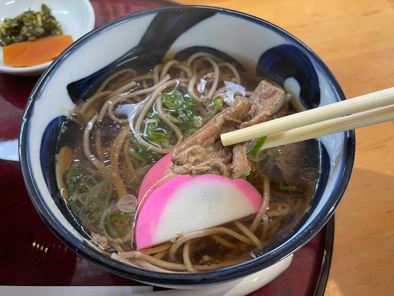 そばやうどんが選べる“あか牛だし汁”は、だしの旨味が強くて、牛の出汁ってこんなに優しいんだなぁとしみじみ感じます。